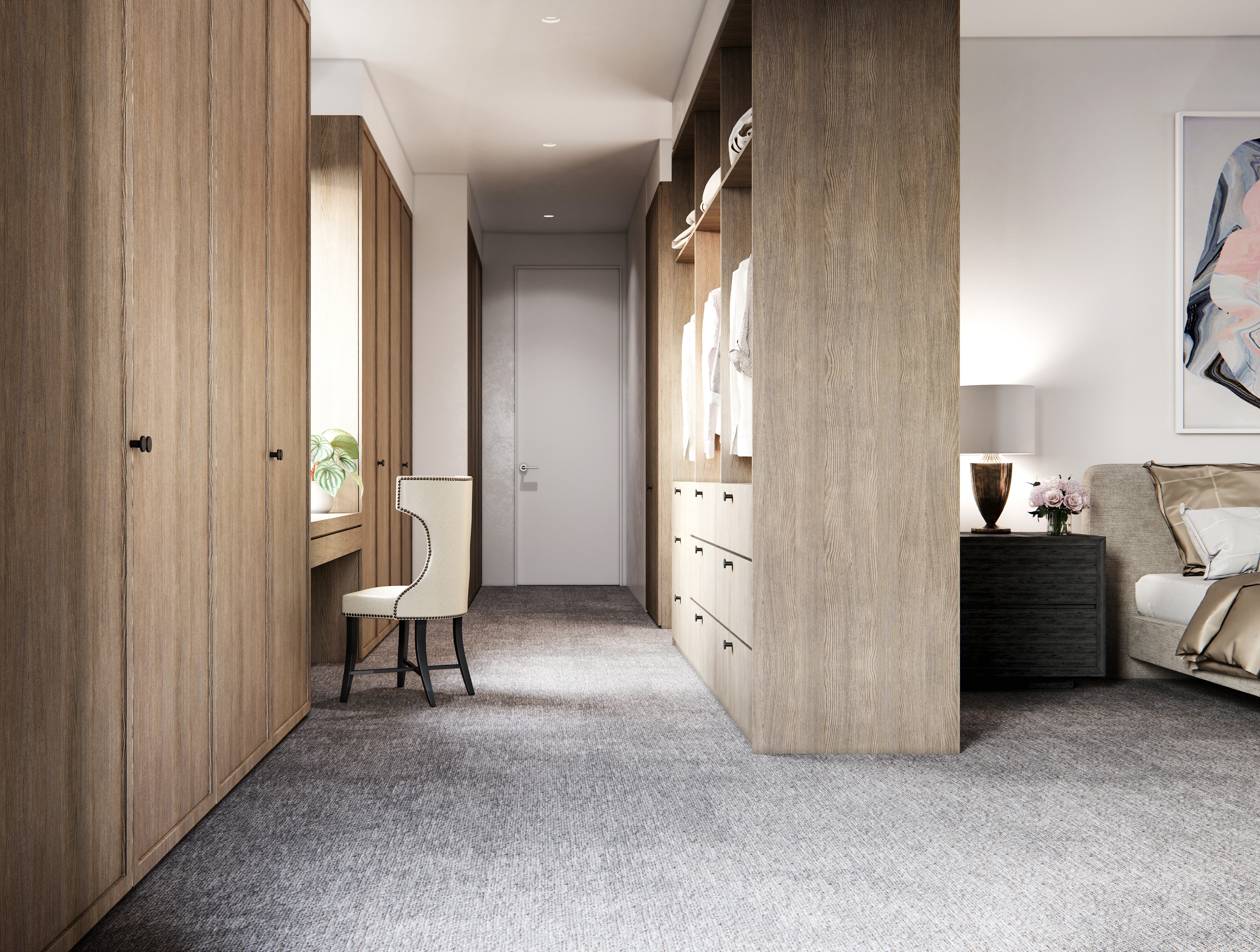 The façade speaks of permanence and sophistication, black stone cladding, steel-framed balconies and a textural composition that gives the building both presence and poise. Within each residence, generous floor plans unfold into thoughtful living spaces, where the quality of materials and spatial flow reflect a commitment to timelessness.